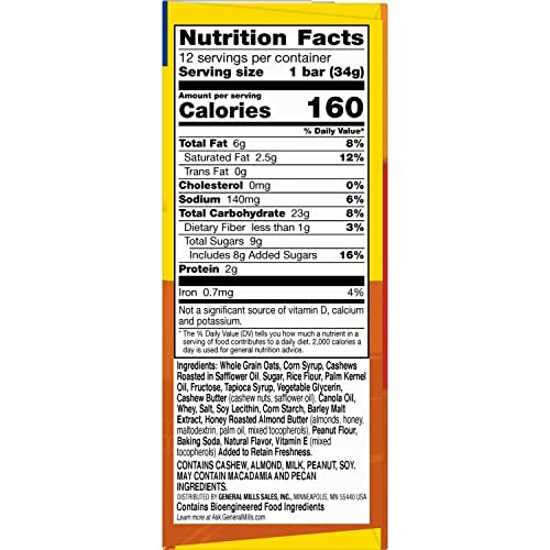 CONTAINS: One 14.4 oz box of Nature Valley Cashew Sweet and Salty Nut Chewy Granola Bars; 12 bars