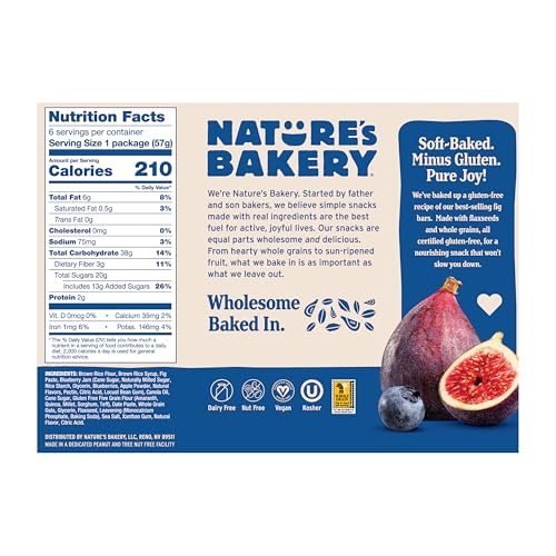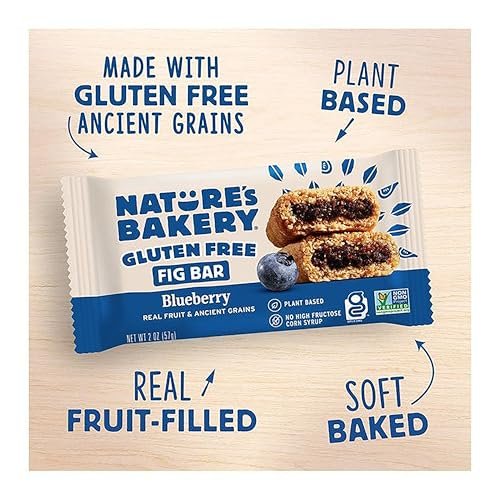 Nature’s Bakery Gluten Free Fig Bars, Blueberry, Real Fruit, Vegan, Non-GMO, Snack Bar, 1 Box With 6 Twin Packs (6 Twin Packs)