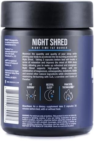 Be the first to review “Night Shred Fat Burner and Natural Sleep Support | Ashwaganda, 5-HTP, CLA, Melatonin | Appetite Suppressant | Weight Loss Support Nighttime Fat Burning (60 Vegetarian Capsules)”