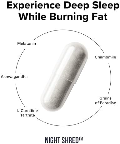 Night Shred Fat Burner and Natural Sleep Support | Ashwaganda, 5-HTP, CLA, Melatonin | Appetite Suppressant | Weight Loss Support Nighttime Fat Burning (60 Vegetarian Capsules)