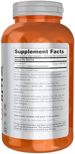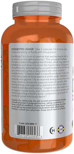 NOW Foods Sports Nutrition, Kre-Alkalyn Creatine 750 mg, Mass Building*/Energy Production*, 240 Veg Capsules