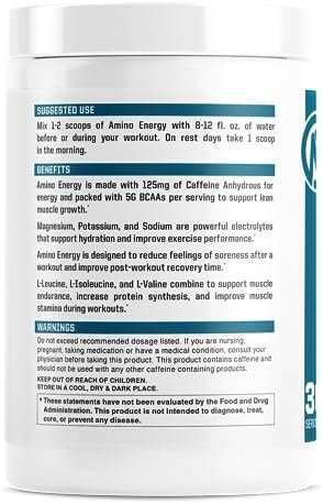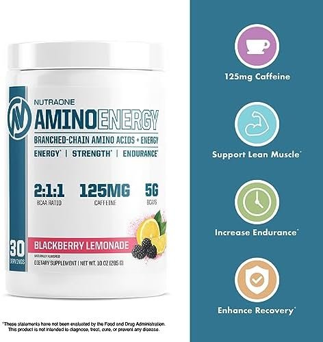 NutraOne Amino Energy BCAA Powder Pre-Workout Supplement with Caffeine Branched Chain Amino Acids to Help Fuel and Recover* (Strawberry Watermelon – 30 Servings)