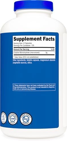 Nutricost Micronized Creatine Monohydrate 3,000mg 500 Capsules, 125 Servings, 750mg of Creatine Monohydrate Per Capsule