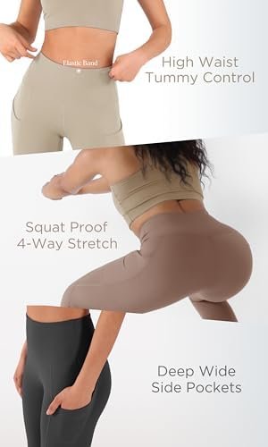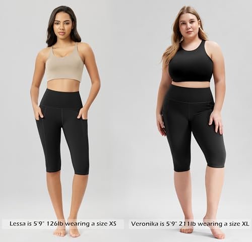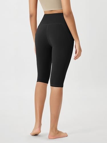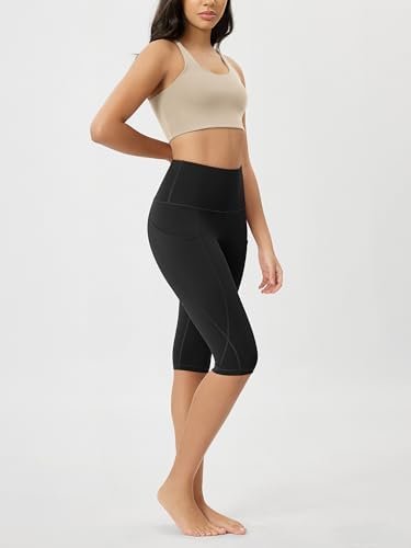 ODODOS Women’s High Waisted Yoga Capris with Pockets, Tummy Control Non See Through Workout Athletic Running Capri Leggings