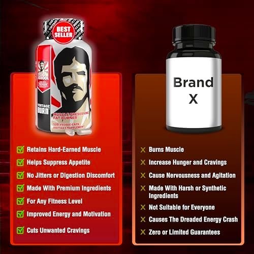 A Different Fat Burner: The problem with other fat burners is that they also make you lose muscle, which decreases your base metabolic rate (BMR) and stops your progress. Vintage Burn is different. It focuses on preserving your hard-earned muscle while speeding up the body’s metabolism to burn fat and only fat.