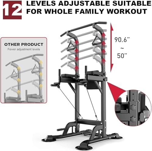 PROHIKER Power Tower Pull Up Bar Stand Adjustable Height Dip Station Workout Equipment Multi-Function Strength Training Exercise Equipment 400LBS for Men Women Home Gym