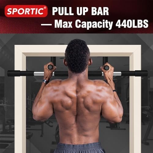UPGRADE PULL UP BAR – Our door frame horizontal bar has been upgraded, and the thickness of the horizontal bar is now 1.7mm, which makes it more load-bearing, max capacity is 440lbs. Additionally, two screws are installed in the middle of the horizontal bar to fix it, solving the problem of loose horizontal bars and enhancing its stability