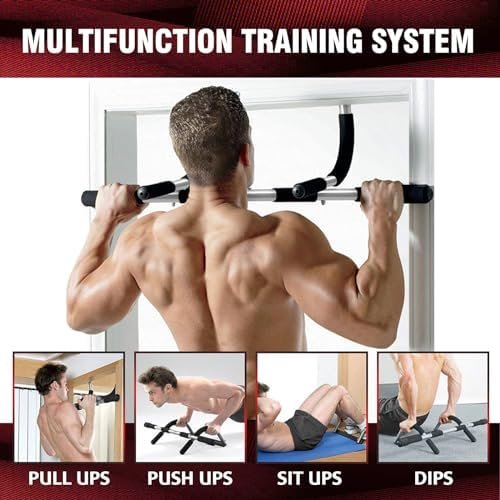 MULTIFUNCTIONAL EXERCISE BAR – This pull up bar for doorway not only provides pull-ups but also enables wide-grip push-ups, sit-ups, arm and shoulder exercises, helping you achieve a variety of workouts for a strong upper body. It replaces multiple devices, making it a versatile addition to your home gym.