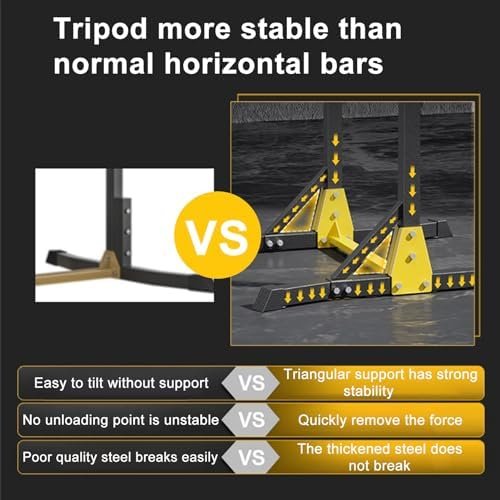 【Heavy-Duty Strength】: Crafted with thickened steel pipe, this Pull Up Bar boasts exceptional load-bearing capacity, supporting up to 400 lbs. Its reinforced structure, featuring triangular support on both sides, guarantees stability and durability.