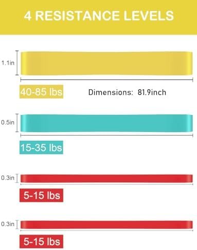 Package Included: 4 pullup bands. Gym bands are 2 pcs Red 5-15 lbs, 1pc Cyan 15-35 lbs, 1pc Yellow 30-70 lbs. Use these exercise bands to perform rows, pulls, raises, and fly workout sets to exercise your arms, back, hips, legs, chest, and abdominal region