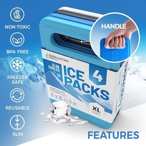 Convenient Handle: Each ice pack features a built-in handle for easy carrying and placement, making them ideal for ice packs for cooler and travel cooler for car.