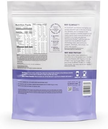 A vital component in proper weight loss is not starving your body of the essential vitamins, protein, and minerals that it needs to produce energy throughout the day. Fortunately, SlimFast has a great-tasting solution for those searching for a meal replacement product. SlimFast Advanced Nutrition Meal Replacement Smoothie Mix Powder is an exceptional meal replacement product that curbs hunger for up to four hours. This rich, decadent, and exceptionally tasty smoothie comes with more protein and less sugar, allowing you to indulge in Chocolate cravings while still shedding those unwanted pounds. The Smoothie Mix Powder by SlimFast contains 20g of protein* along with 24 essential vitamins and minerals that provide your body with the nourishment it needs to sustain energy for hours. SlimFast has received multiple awards from Men’s Health and OK! Magazine for best meal plans. This meal replacement smoothie can also be used as an ingredient in several recipes. Additionally, it contains 5 grams of fiber, which helps in digestion. As part of the clinically proven SlimFast Plan, these delicious gluten-free meal replacement smoothies help control hunger. The SlimFast Plan is proven to help you lose weight fast and keep it off. With clinical studies, independent researchers confirm that SlimFast works. The SlimFast Plan makes losing weight as easy as 1 – 2 – 3: simply enjoy one of your favorite 500-calorie meals, replace two meals a day with SlimFast shakes or smoothies and indulge in three SlimFast snacks to satisfy your hunger. It’s easy to start any time ‚Äö√Ñ√Æ just Pick A Date, Lose The Weight! **Based on clinical studies of the overall SlimFast 1-2-3 Plan (a calorie-controlled diet, regular exercise and plenty of fluids), demonstrating fast and sustained weight loss. Individual results may vary. Average weight loss is 1-2 lbs per week. Check with your doctor if nursing, pregnant, under 18 or following a doctor prescribed diet.