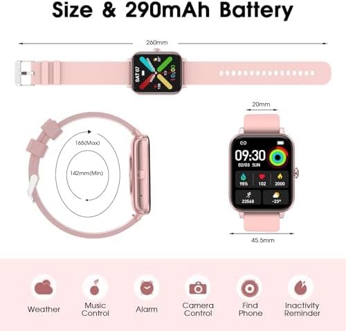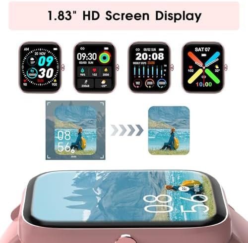 Smart Watch for Women (Answer/Make Call): 1.85″ Waterproof Fitness Trackers with 24-Hours Blood Pressure Heart Rate SpO2 Sleep Monitor Watches for Women, iPhone Android Compatible( (Light Pink)