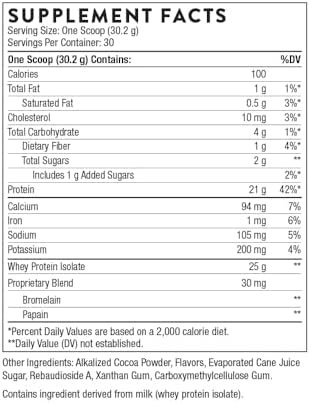 THORNE – Whey Protein Isolate – 21 Grams of Easy-to-Digest Whey Protein Powder – NSF Certified for Sport – Chocolate – 31.9 Ounces – 30 Servings