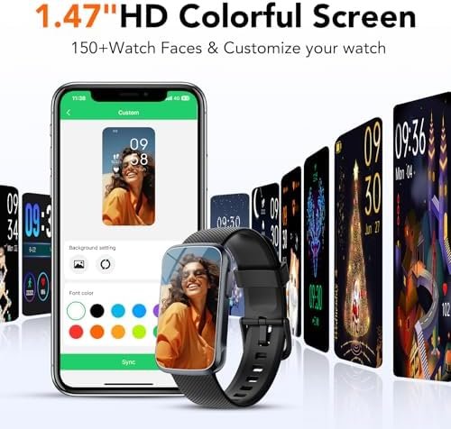 1.47 HD Display and 100+ Custom Watch Faces: This fitness tracker watch features a 1.47-inch HD color touch screen, offering an excellent user experience. Every day, you can change the smartwatch face with over 100 watch faces in ‘Gloryfit’APP or photos of your phone’s albums to reflect your unique style, bringing vibrancy to your fitness tracker that matches your lifestyle. This activity and fitness trackers for women and men also has a wrist-turn wake-up technology for easy viewing at any time