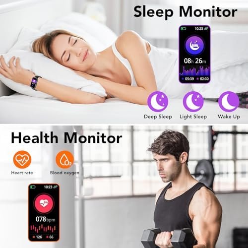 Long Battery Life and IP68 Waterproof: 1.5 to 2 hours charge with a magnetic USB cable fully powers this waterproof fitness tracker, supporting 6-7 days of heavy use or 12-15 days of daily use, staying away from charging anxiety. This smart fitness watch features IP68 waterproof rating, so you don’t have to worry about washing hands, rainy weather