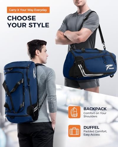 Tolaccea Gym Bags for Men Women, 45L Large Travel Duffel Bags with Shoe Compartment & Wet Pocket, Weekender Overnight Carry On Backpack Duffle Bag for Traveling Sports Workout (Blue)