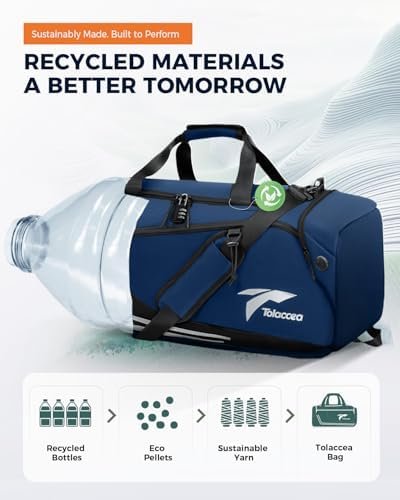STURDY LIGHTWEIGHT COMFY: Our Tolaccea gym bag weighs only 3 pounds because it is made of RPET fabric, a material made from recycled plastic bottles. It’s sturdy and easy to clean. It is also durable with smooth zippers and tight seams. Adjustable length shoulder straps with breathable padding help reduce fatigue during long hiking trips.