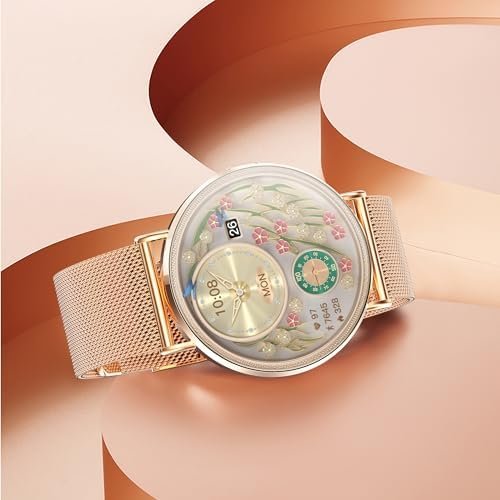 Fitness Tracker with Over 150 Sports Modes: This fitness watch automatically tracks your daily steps, distance, and calories burned. With over 150 sports modes to choose from, including running, hiking, badminton, basketball, mountain climbing, and yoga, it caters to both outdoor and indoor enthusiasts. Designed with women in mind, it features a 3D dynamic UI and a variety of feminine dynamic watch faces. Plus, with over 200 watch face styles to select from, or the option to upload your own photos for customization, it adds a touch of joy to your fitness journey.