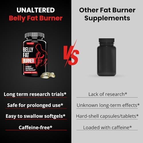 UNALTERED Belly Fat Burner for Men – Natural Weight Loss Pills to Support Reduced Body Fat, Preservation of Lean Muscle Mass, and a Healthy Metabolism – CLA Dietary Supplement – 90 Softgel Capsules