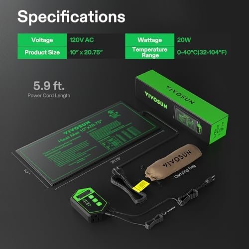 VIVOSUN 10″x 20.75″ Seedling Heat Mat and Digital Thermostat Combo Set, UL & MET-Certified Warm Hydroponic Heating Pad for Germination, Indoor Gardening, Greenhouse