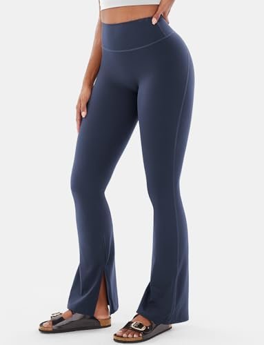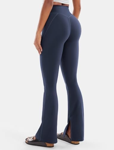 VOYJOY Womens Split Hem Legging Workout High Waist Mini Flared Leggings Casual Workout Gym Yoga Pants