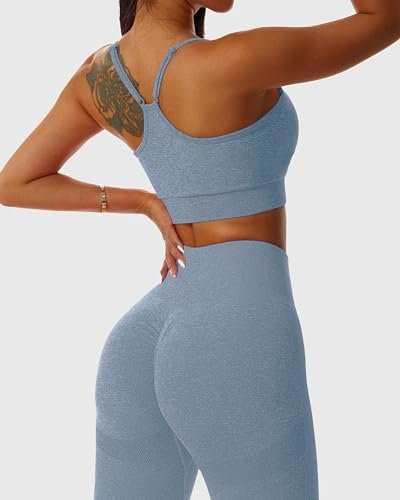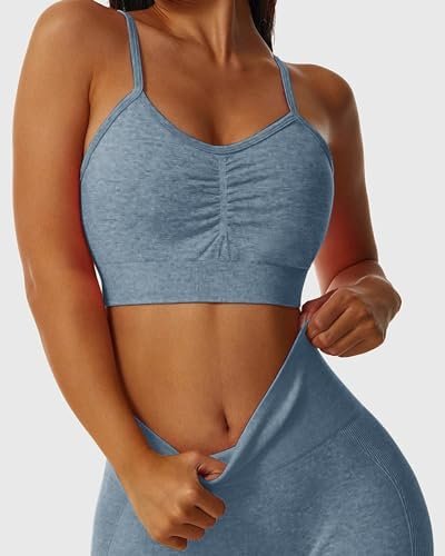 Womens 2 Piece Seamless Workout Sets Butt Lifting Shorts with Padded Stretchy Sports Bra Jogging Yoga Gym Outfits